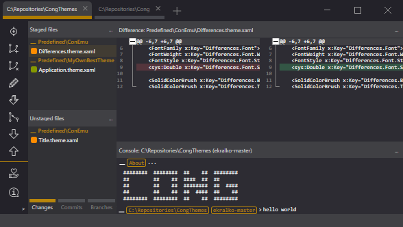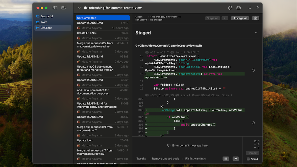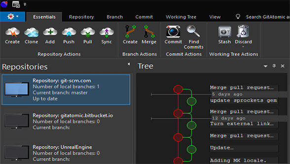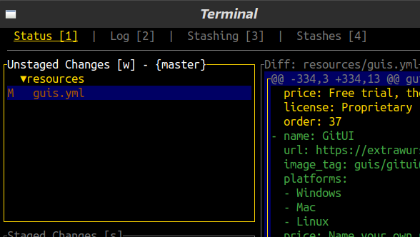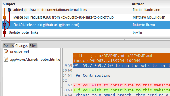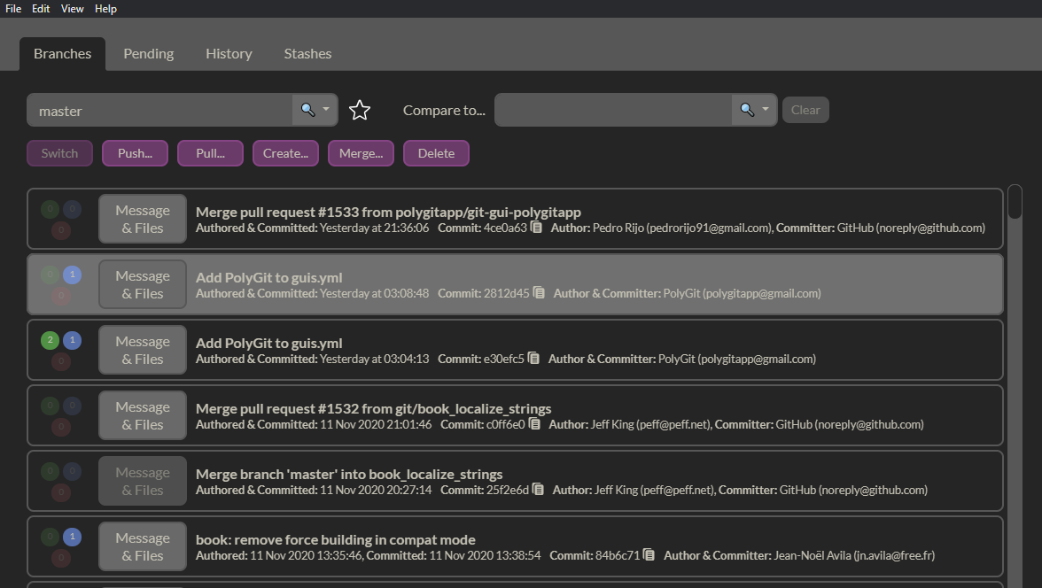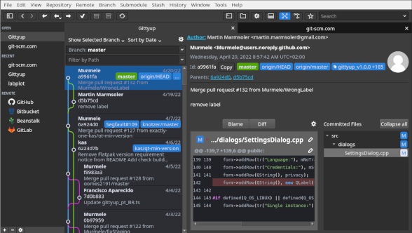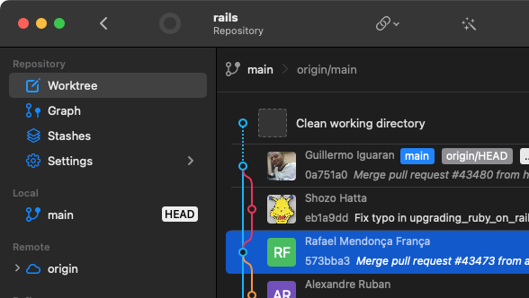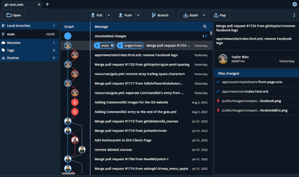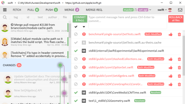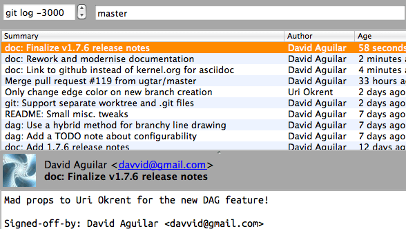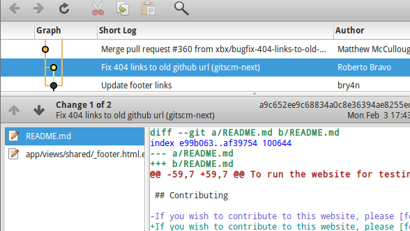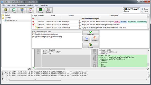 Git 自帶用於提交的 GUI 工具(git-gui)和瀏覽工具(gitk),但對於尋求平臺特定體驗的使用者,也有多個第三方工具可供選擇。