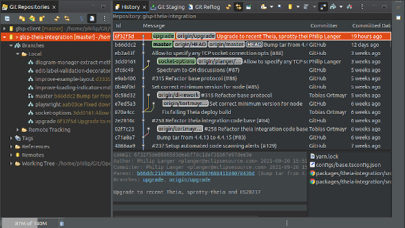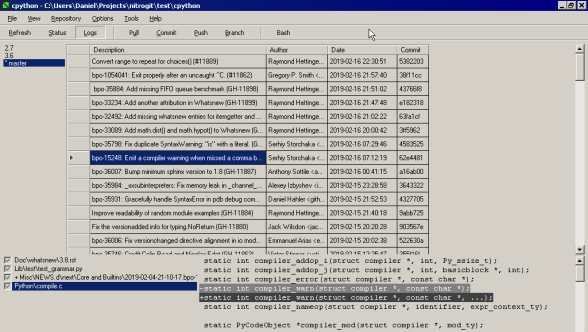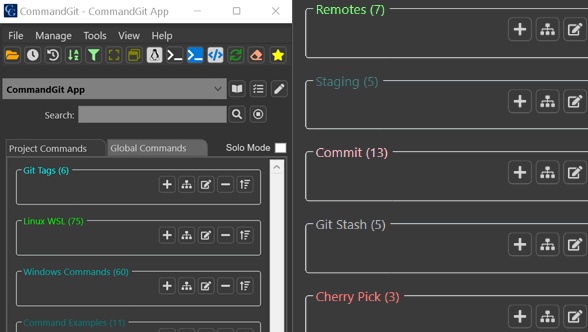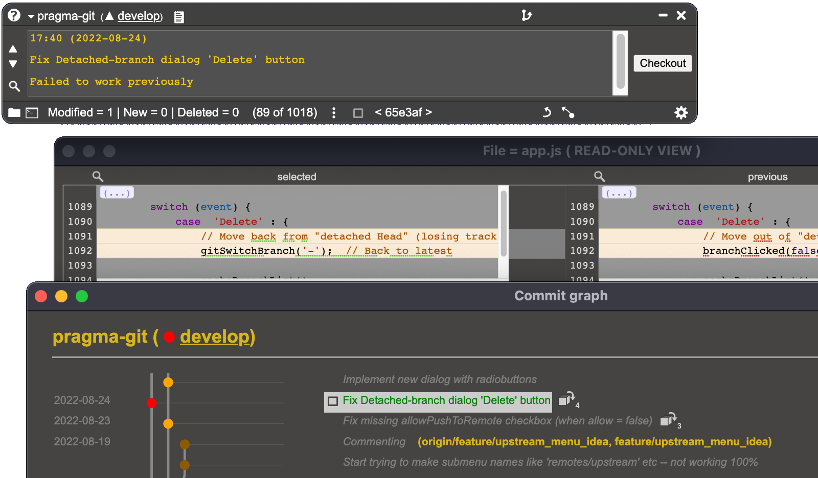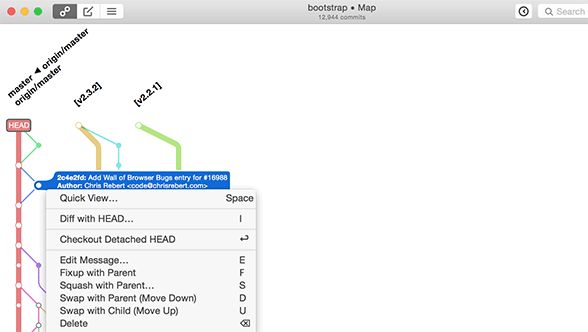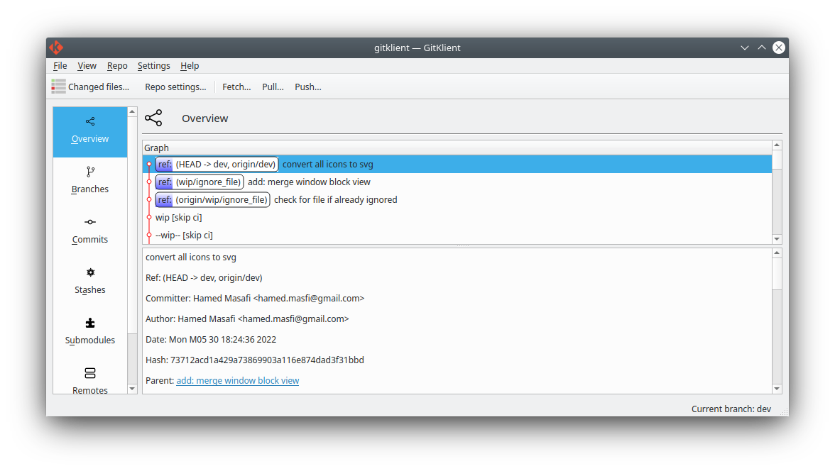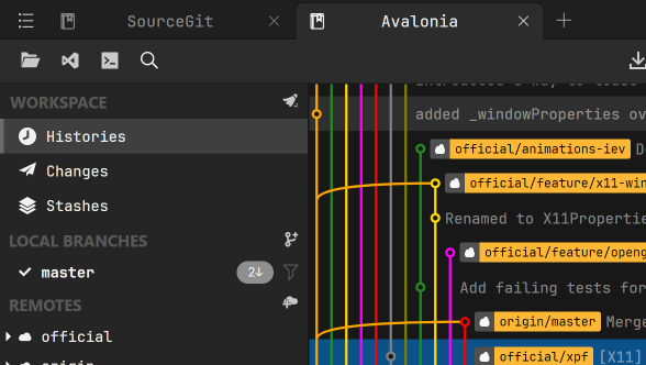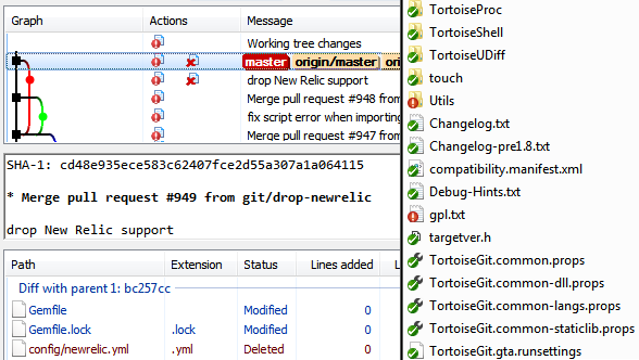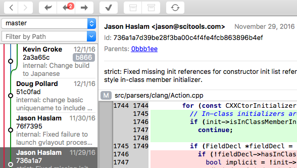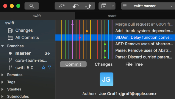 Git 自帶用於提交的 GUI 工具(git-gui)和瀏覽工具(gitk),但對於尋求平臺特定體驗的使用者,也有多個第三方工具可供選擇。
